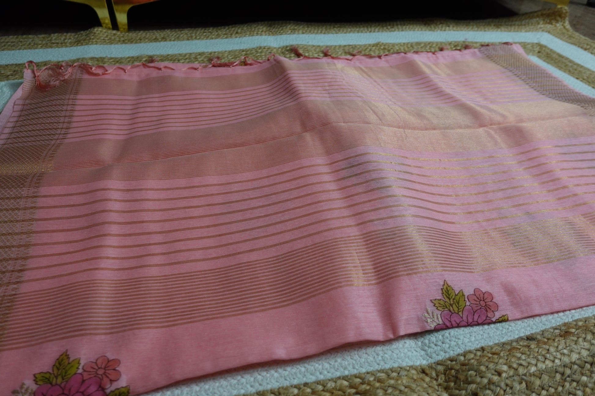 Soft, elegant, and intricately detailed, this baby pink linen saree features delicate floral motifs enhanced with fine thread embossing. The gentle pink hue exudes femininity and charm, while the textured embroidery adds depth and artisanal beauty to the design. Lightweight and breathable, the linen fabric ensures comfort with a refined drape—perfect for daytime events, summer gatherings, or subtle festive occasions.