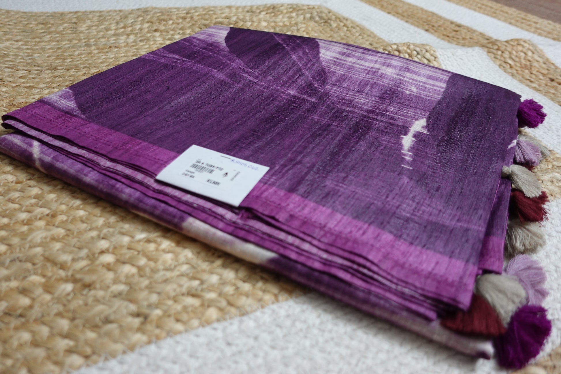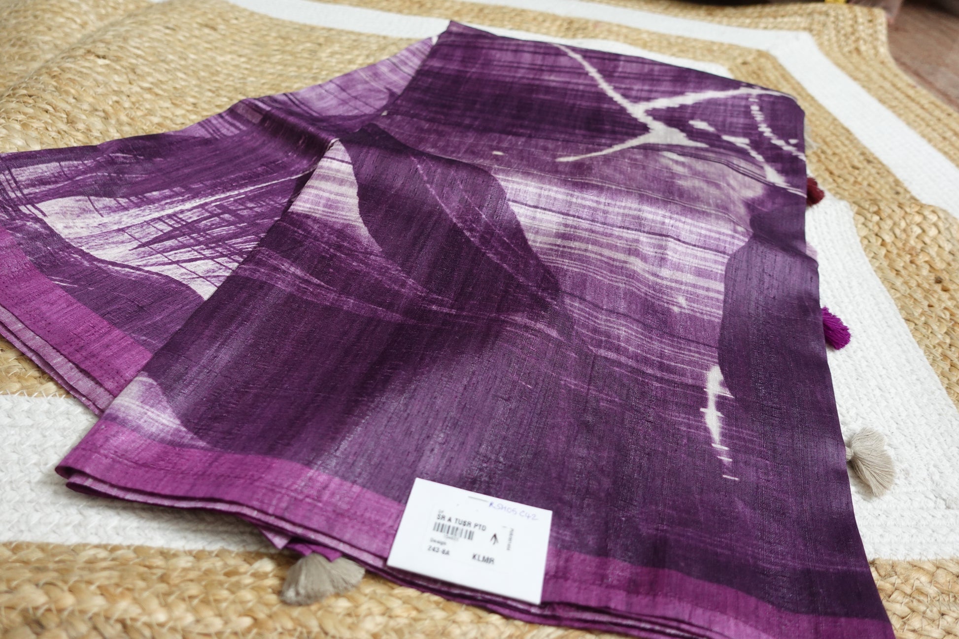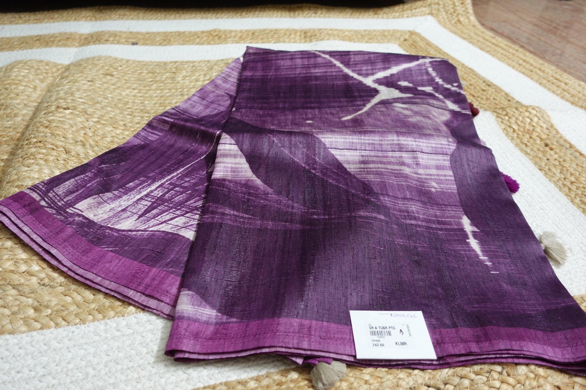 Make a bold yet graceful statement with this wine-colored semi tussar saree, featuring abstract prints in varying shades of wine and white. The rich, deep hue paired with artistic patterns creates a refined and contemporary look. The semi tussar fabric offers a soft texture and elegant drape, making it a perfect choice for festive occasions, evening events, or sophisticated daywear.